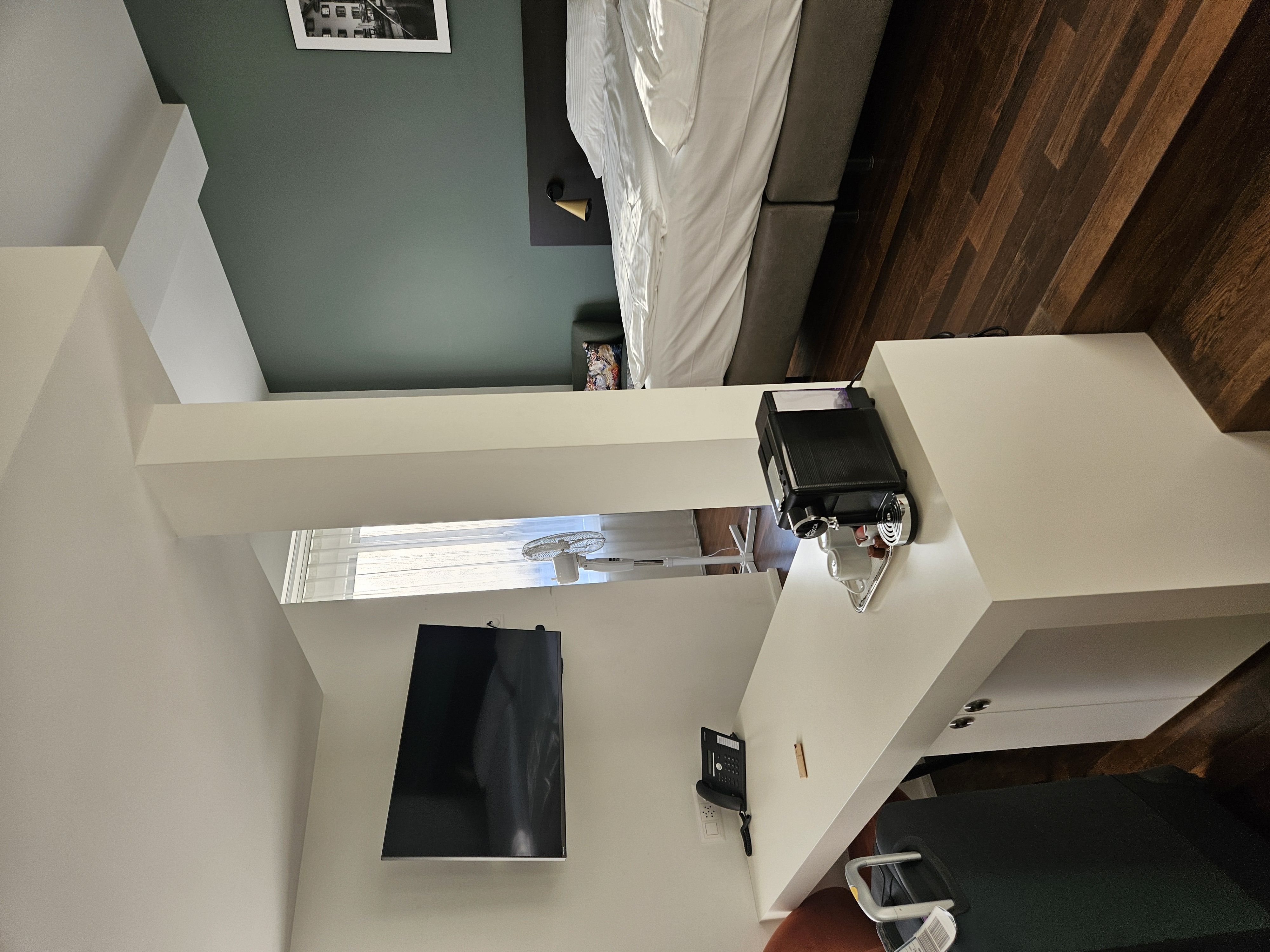 방 안에는 커피머신과 기본적인 어메니티가 구비되어 있었고, 특히 반가웠던 건 냉장고였다. 우리는 한국에서 반찬을 조금 챙겨 갔던 터라 하루 정도 보관할 냉장고가 필요했는데, 객실 내 냉장고 덕분에 잘 활용할 수 있었다. 스위스 호텔 중에는 냉장고가 없는 경우도 많은데, 이곳은 있어서 정말 감사했다.