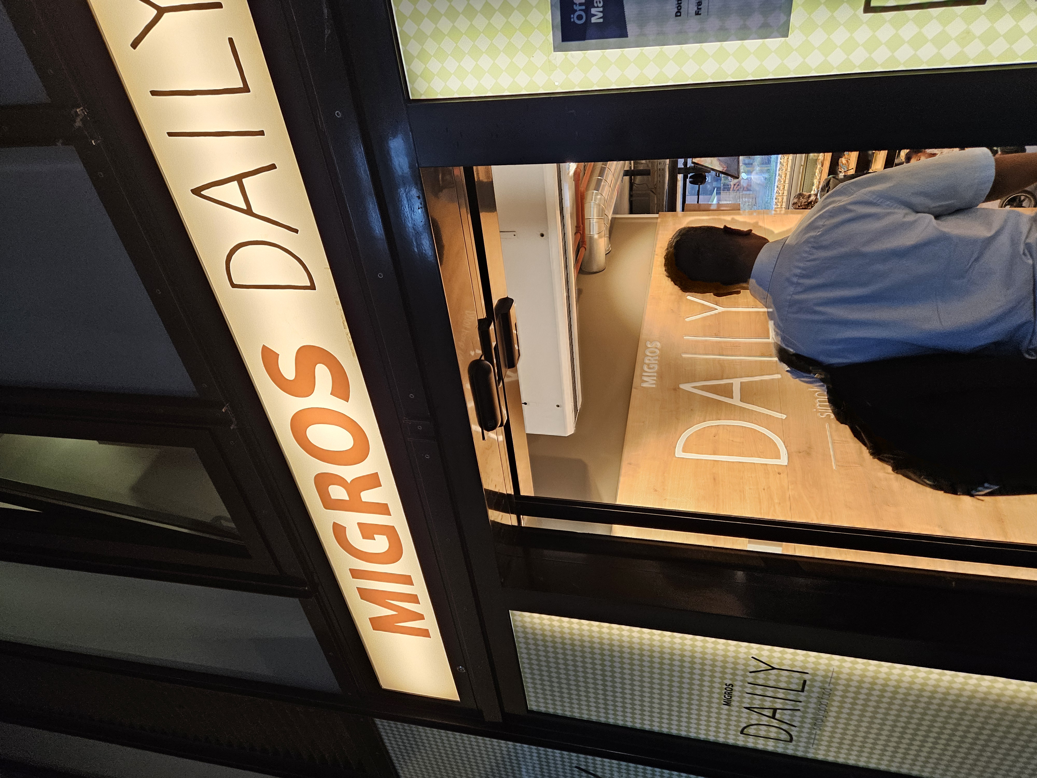 숙소를 나오니 migros가 보였다. 스위스 곳곳에서 자주 마주치게 되는 두 대표 마트가 있는데 Coop(쿱)과 Migros(미그로)가 그렇다.