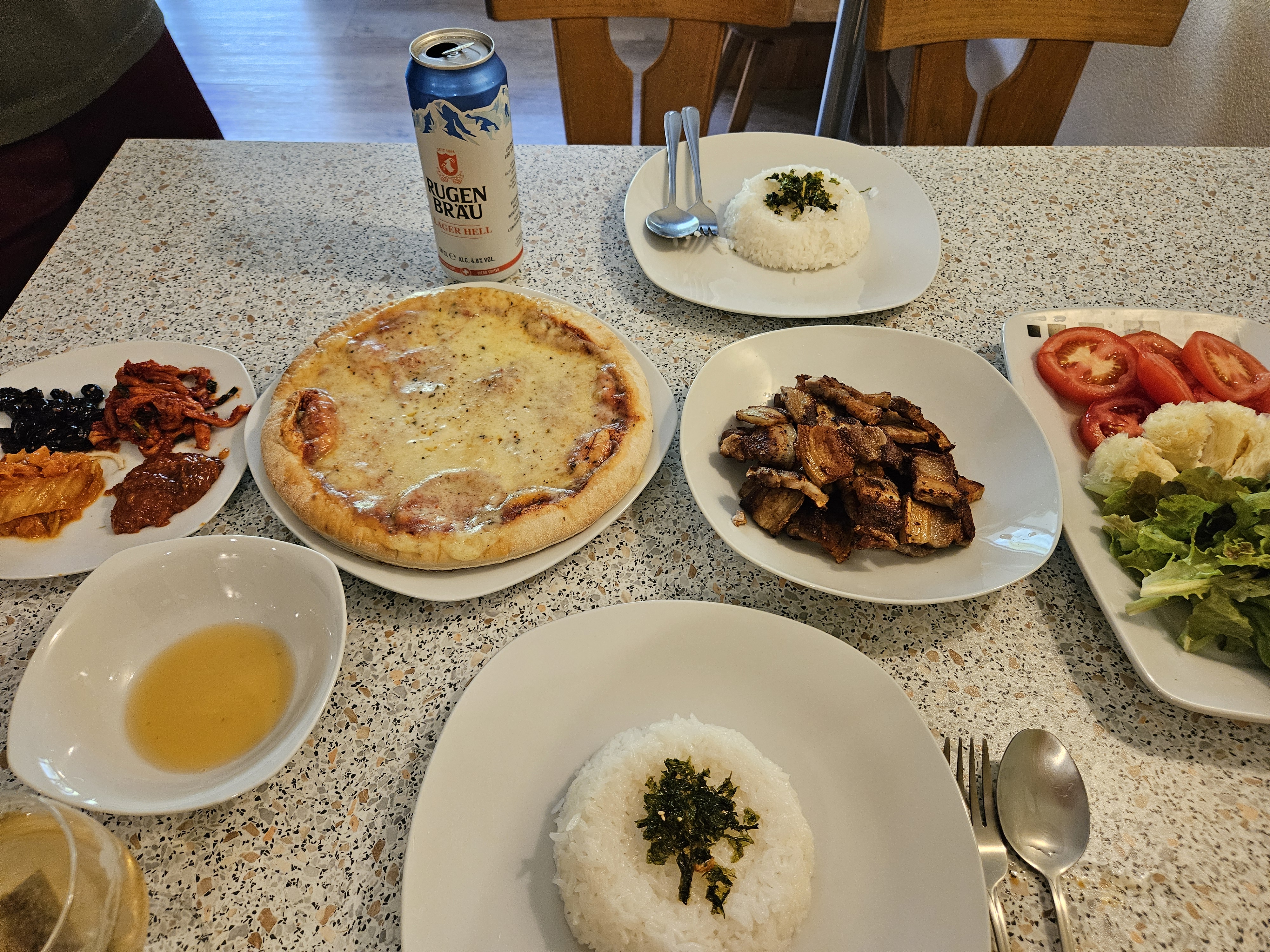 여행 중이라 간단히 해결할 줄 알았는데, 막상 차려놓고 보니 제법 든든한 집밥 같은 분위기가 났다.
