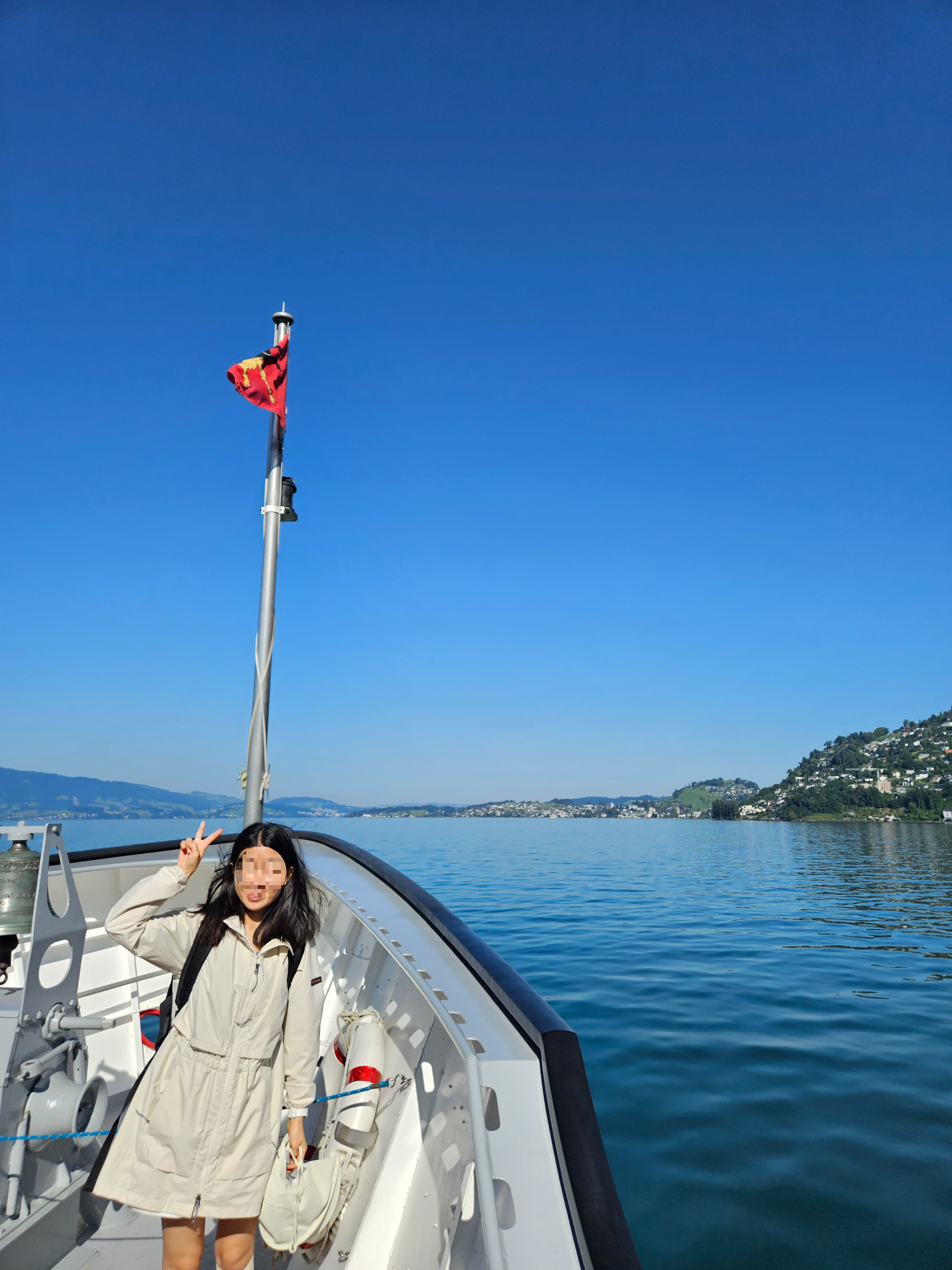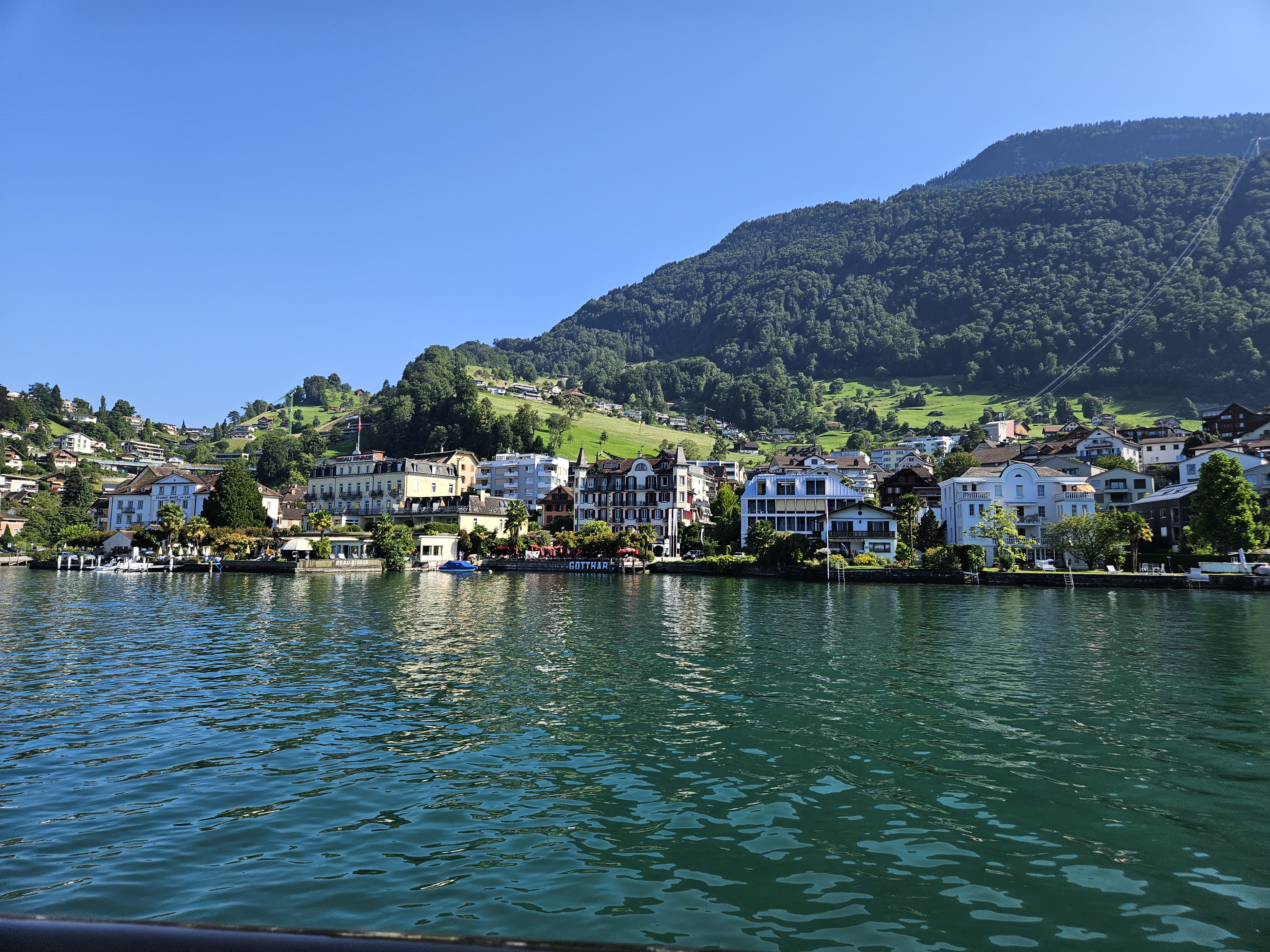 우리가 탄 유람선은 중간 정박 없이 바로 루체른까지 향했다. 차처럼 빠르지도 않고, 그렇다고 버스처럼 바쁘지도 않은 속도로 호수 위를 미끄러지듯 나아가는데, 그 위에서 지나가는 풍경이 마을과 호수라는 새로운 주제의 엽서 같았다.