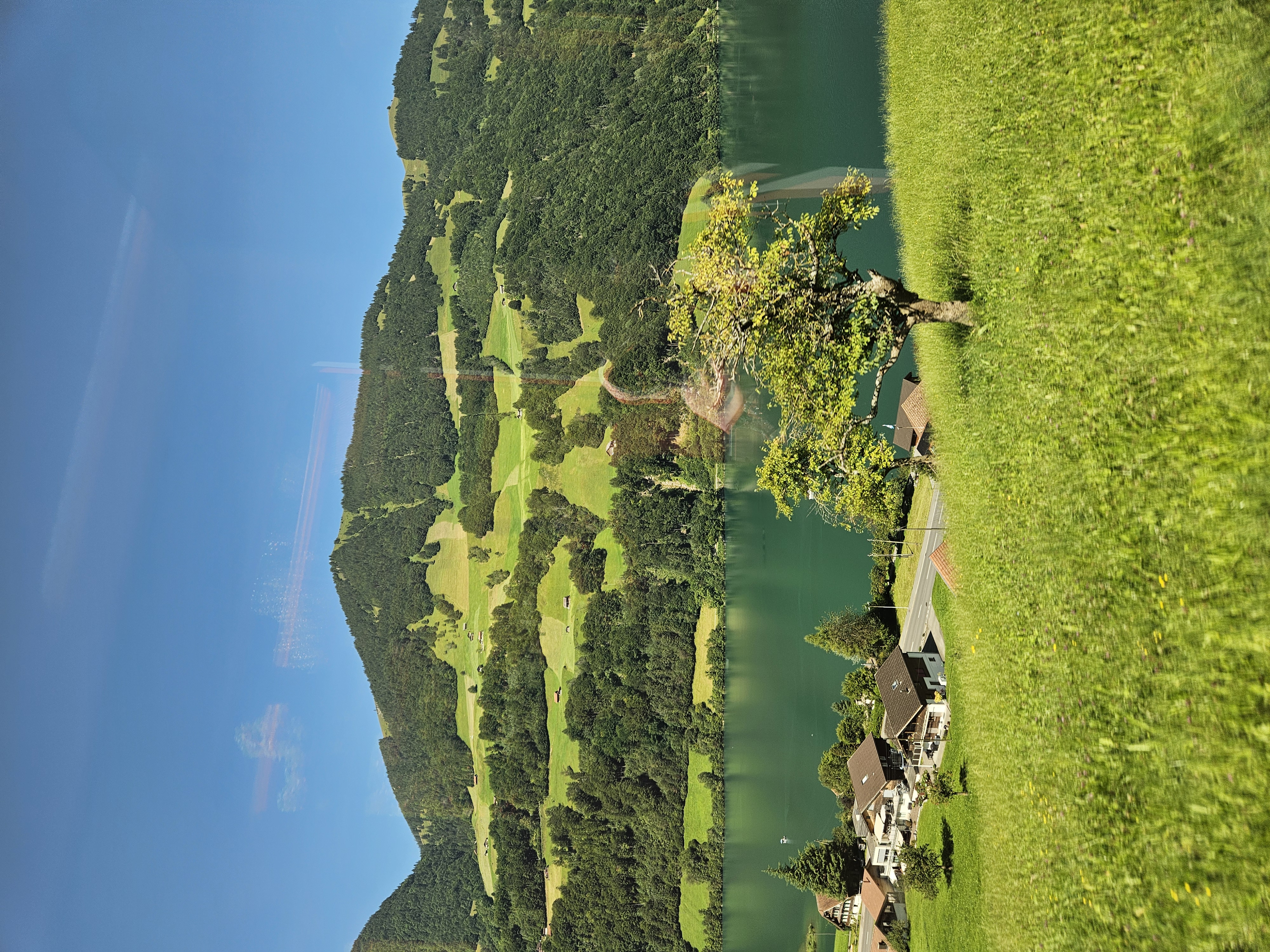 옅은 초록의 산자락과 호수를 따라 이어진 작은 마을들, 그리고 멀리 겹겹이 솟은 알프스의 능선까지, 모두가 파란 하늘 아래 차분히 놓여 있는 모습이 저절로 마음을 편안하게 했다.