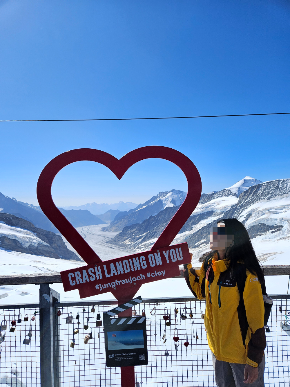 스위스 국기가 펄럭이는 전망대 포토 포인트에서 기념 사진도 남겼다.