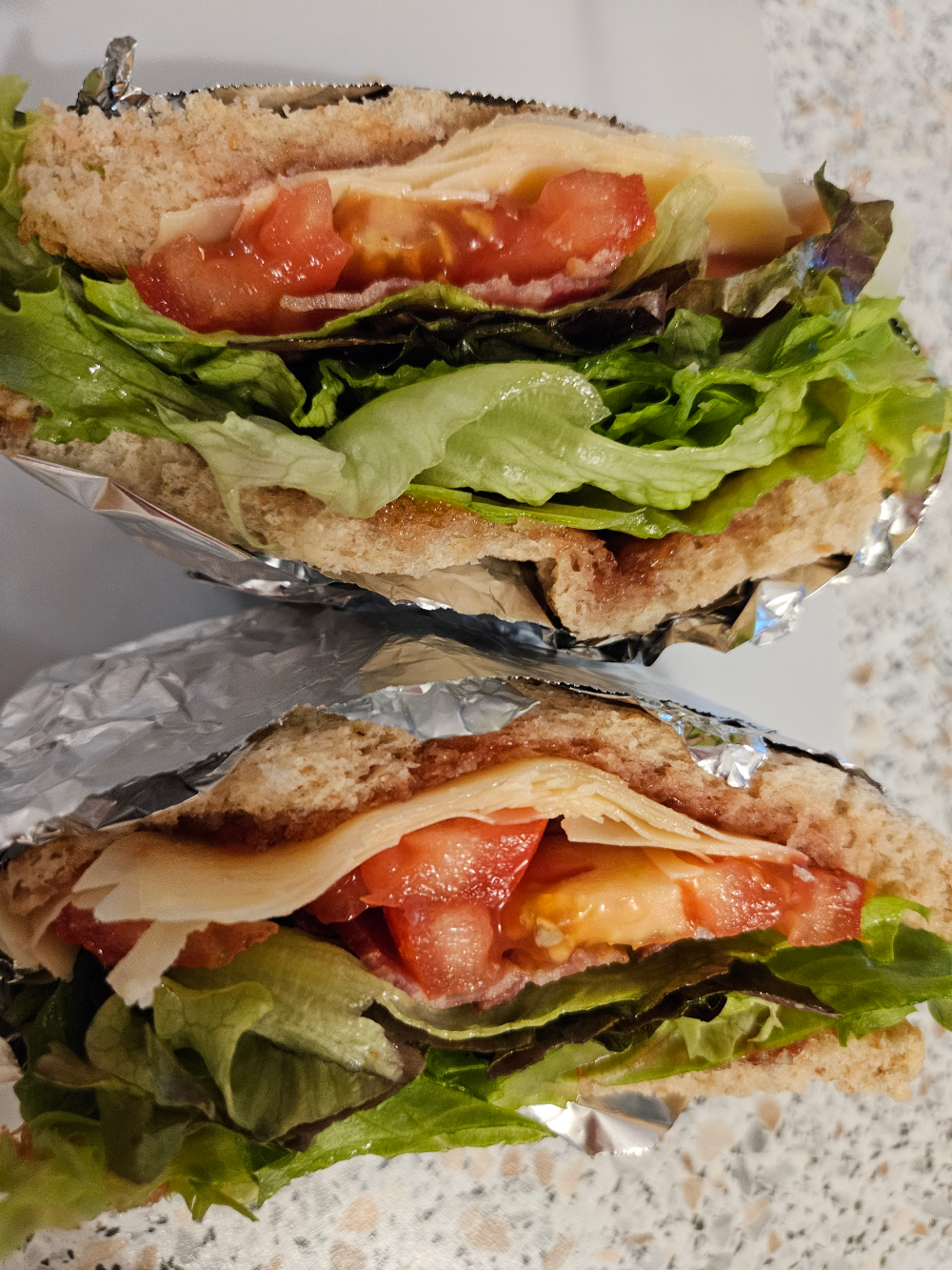 재료를 가득 넣은 샌드위치는 호일로 단단히 싸서 반으로 자르니, 비주얼이 생각보다 좋았다.