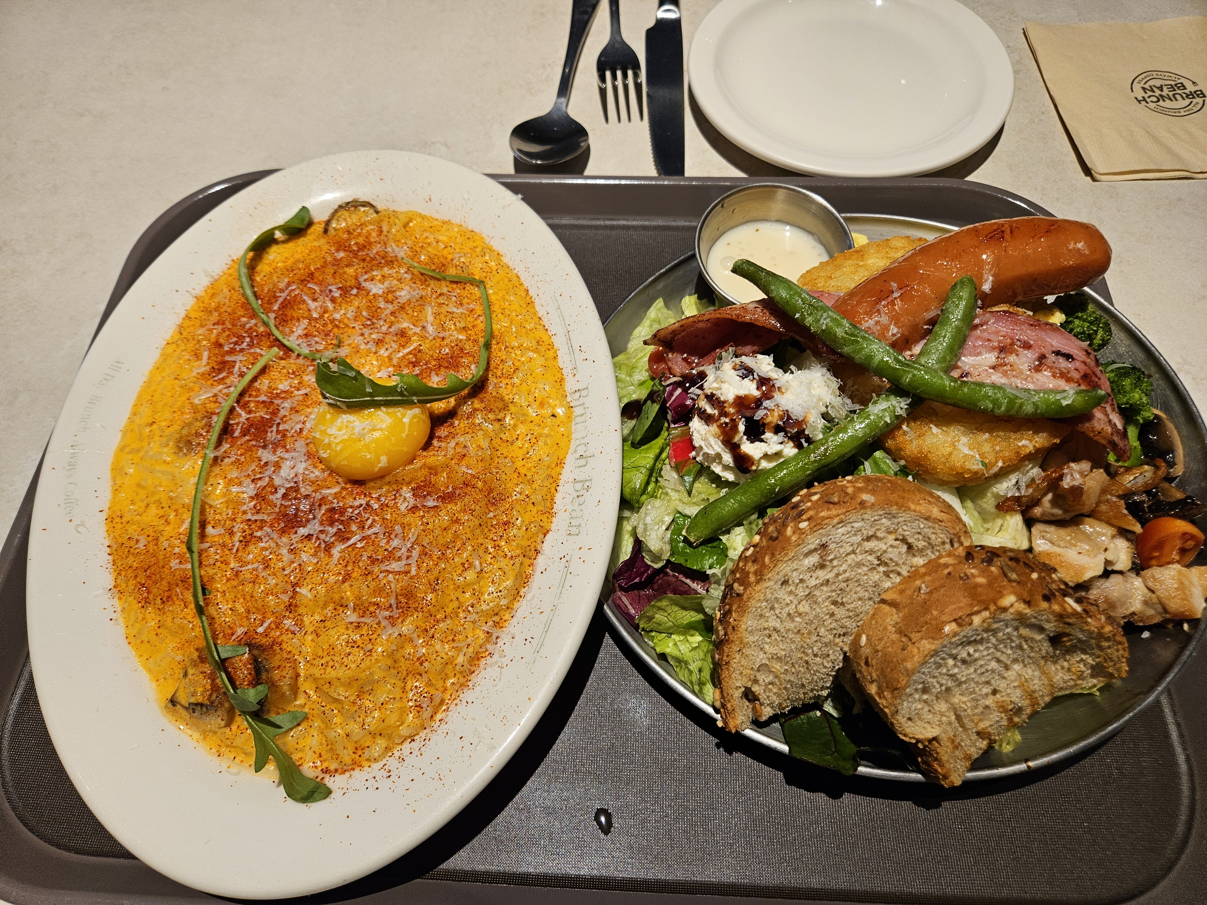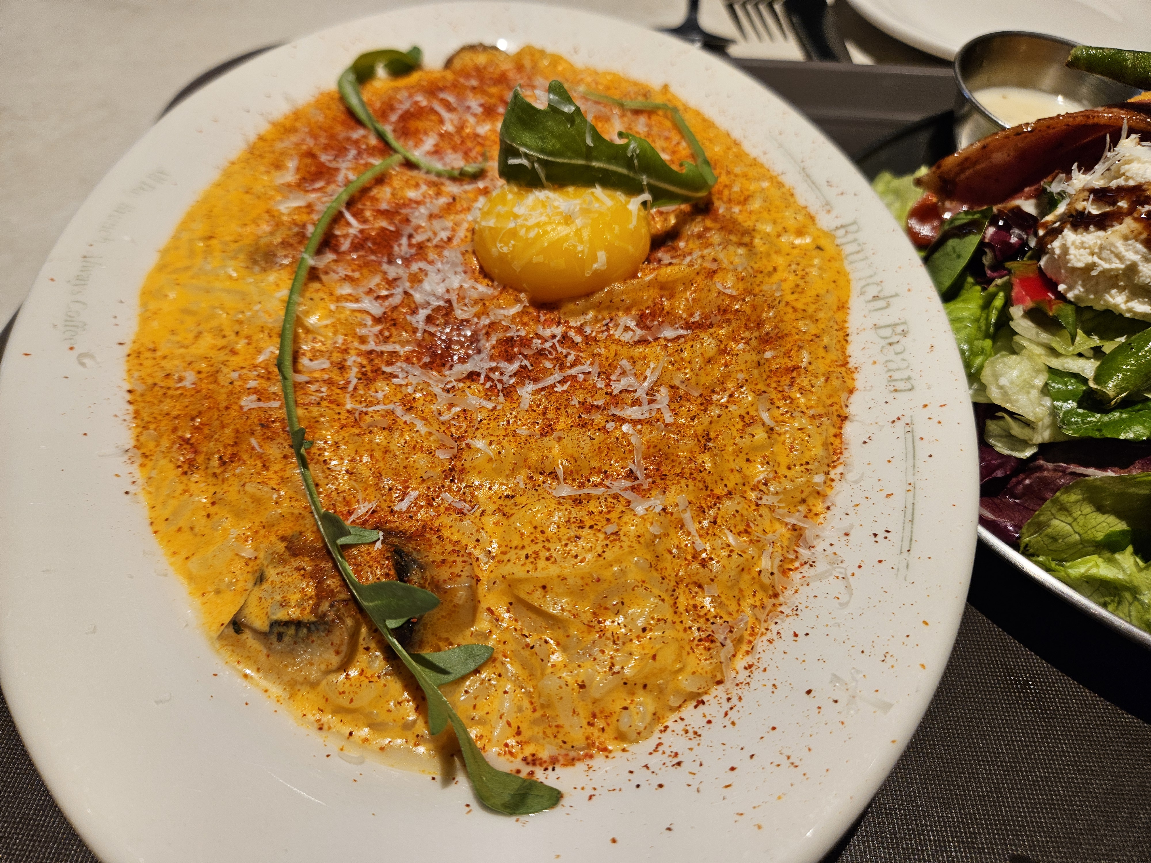 이 리조또는 로제 소스 맛으로, 위에 올라간 수란을 터뜨려 비벼 먹으니 고소하면서도 한층 부드럽게 즐길 수 있었다.